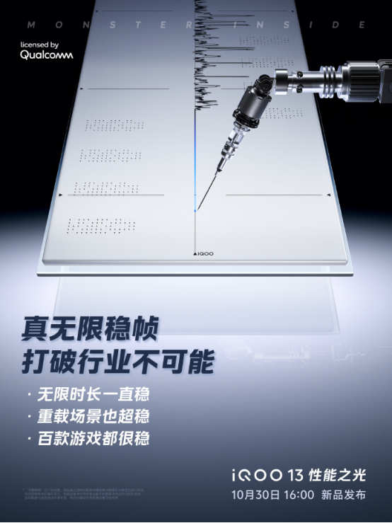 不仅如此,iQOO 13还针对游戏玩家推出了百大游戏“无限稳帧”的强大功能。依托于蓝晶×骁龙8 至尊版的联合优化,iQOO 13能够智能识别游戏场景,进行精准的性能调度,自动预测负载并控制功耗,确保游戏过程中始终保持流畅稳定的帧率。这一创新之举无疑打破了行业的固有界限,树立了新的性能标杆。