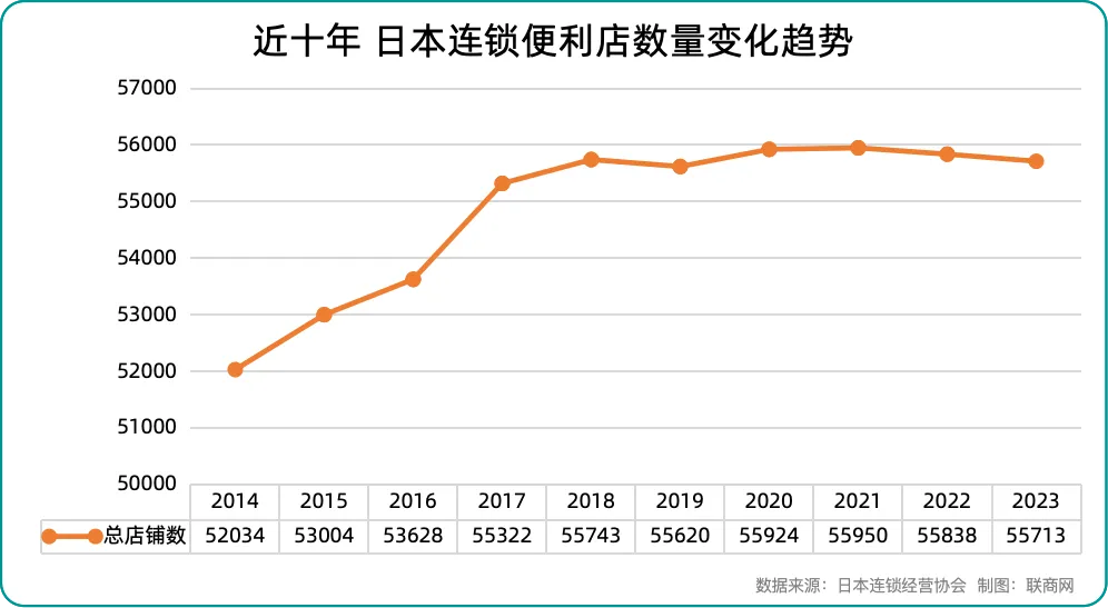 据日本连锁经营协会最新数据显示,截至2024年8月,该国连锁便利店总数为55730家。虽然总店铺数没有大幅减少,但自2022年6月起,已经连续27个月出现同比下滑。