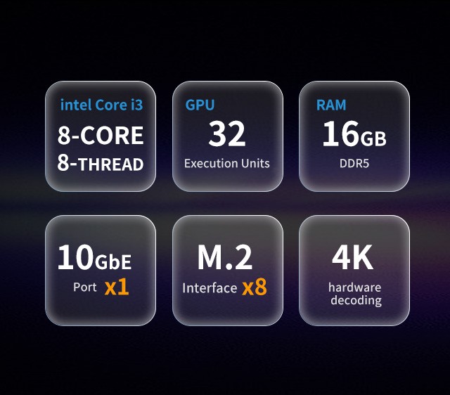 F8 SSD Plus搭载了高性能的固态硬盘(SSD),相较于传统的机械硬盘(HDD),SSD在读写速度上有着质的飞跃。同时F8 SSD Plus采用八核八线程处理器,支持4K硬件解码,一个万兆接口,这意味着在文件传输、视频编辑、大数据处理等场景下,F8 SSD Plus能够为用户提供更为流畅的体验。无论是处理紧急的工作文件,还是进行项目演示,F8 SSD Plus都能轻松应对,大大提升了工作效率。