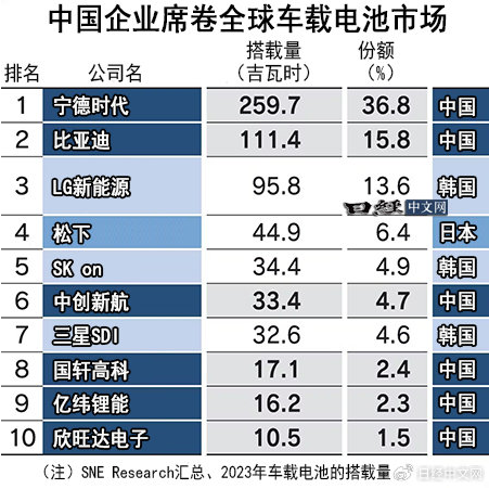 然而,日本在车载电池领域面临的挑战不容忽视。目前全球动力电池市场份额前十名中,仅有松下控股一家日本企业上榜,排名第四。中国企业在电池自产化方面远远领先于日本,通过上下游垂直整合实现了低价位汽车的全球生产。中国宁德时代新能源科技和比亚迪分别占据了全球市场份额的第一和第二位。