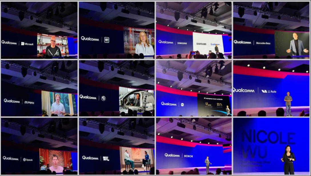 骁龙峰会2024现场,为高通骁龙站台的合作伙伴包括:微软、Meta、小米、OpenAI、BestBuy、三星、奔驰、宝马、理想、、长城汽车、通用汽车