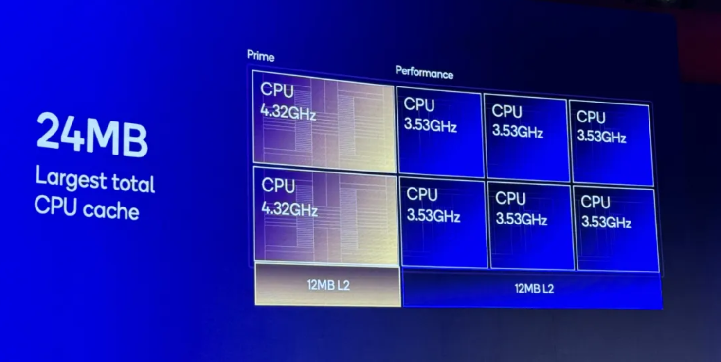 第二代高通Oryon CPU有两个重要创新,其一是面向移动端设计的全新微架构,其二是大幅改进的内存架构。首先在微架构方面,骁龙8至尊版搭载了2个超级内核(Prime)+6个性能内核(Performance Core),「超级内核」的最高主频达4.32GHz,以应对需要更快响应速度的密集型应用;「性能内核」的最高主频达3.53GHz,每个性能内核都经过调优,负责运行最密集型的应用程序,同时具有极高能效。