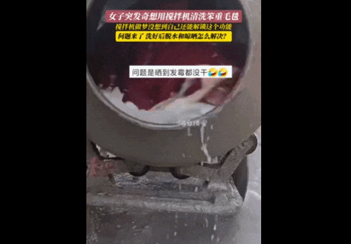 一旦入水,重量激增:日产形态拉舍尔(5斤),沾水形态拉舍尔(50斤)。每个第一次洗拉舍尔的广东人,一开始都云淡风轻:用洗衣机洗不就得了吗?