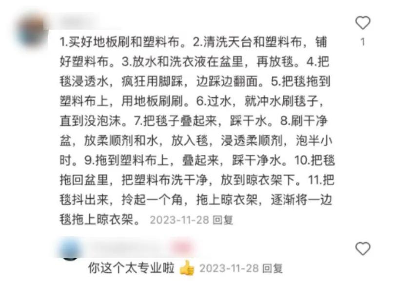 “家里没三个壮汉的,都不敢轻易洗这个毯子。”