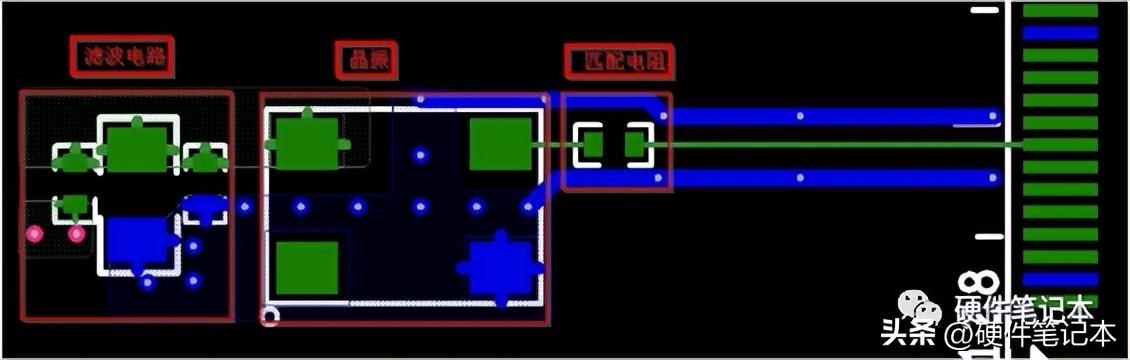 5. 晶体电路模块区域相当于模拟区域,尽量不要有其他信号穿过;
