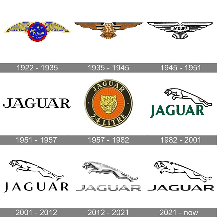 为了不让捷豹的经典标被遗忘,这里也列举一下捷豹历史上用过的标志: