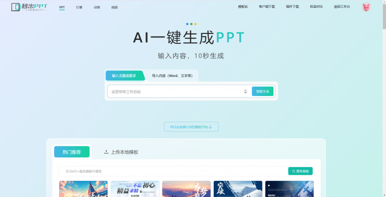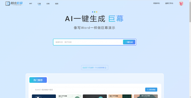 秒出PPT是秒出设计的主打一个产品,主要的作用就是让用户可以一键生成ppt以及导入文档生成PPT,他有自己的模板站且编辑页面也很有特色。