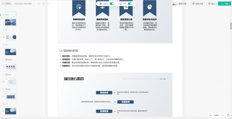 秒出PPT的编辑页面是采用word的形式展现,主打一个“像写word一样做PPT”。有三种模式可以切换,一种是纯文本编辑模式,你可以直接像写一个word一样编辑你的内容,大大降低了做ppt的难度。