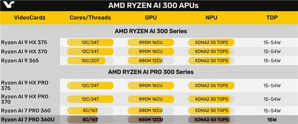 AMD 10月份发布了锐龙AI PRO 300系列商用版处理器,专门面向企业客户,只有三款型号锐龙AI 9 HX PRO 375/370、锐龙AI 7 PRO 360。