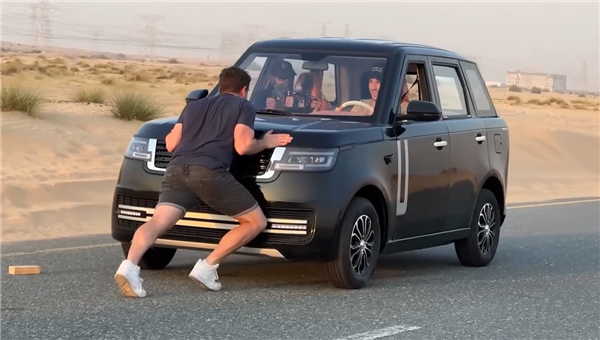 更好玩的是,这台老头乐动力实在是非常有限,车里坐了两个人的情况下,一个成年男人甚至能徒手将它截停,堪比超人一般,在和正版揽胜加速比拼中,更是被虐得找不着北。