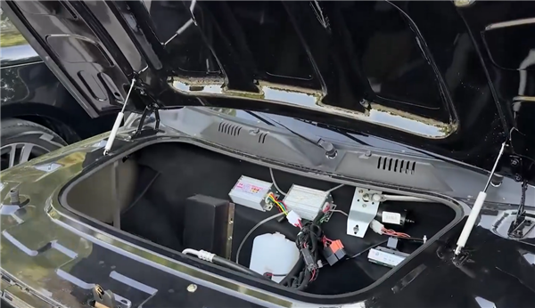 可以看到这台“揽胜”用料很一般,前舱盖稍微用手压一压就变形了,前后舱里的布局也是要多简陋就有多简陋,各种线束凌乱分布,甚至都没有被固定住,可谓“金玉其外败絮其中”。
