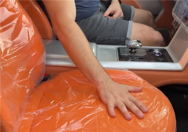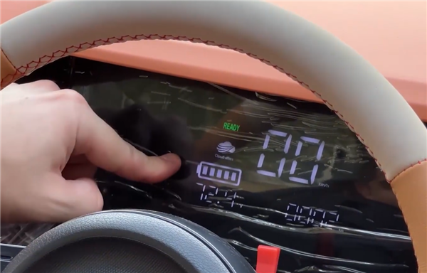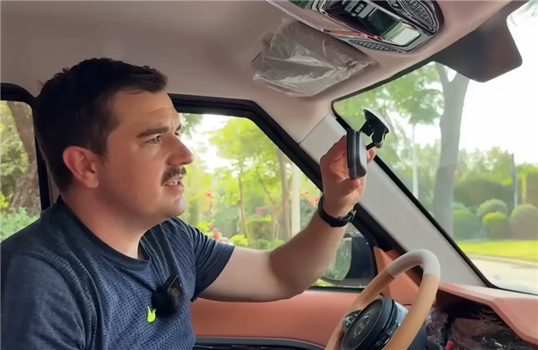 博主还饶有兴趣地进入了车内进行了一番探索,毫不令人意外的是,这台车内饰同样也很凑合,甚至连后视镜都是利用吸盘吸在了挡风玻璃上,随便就能拿下来。
