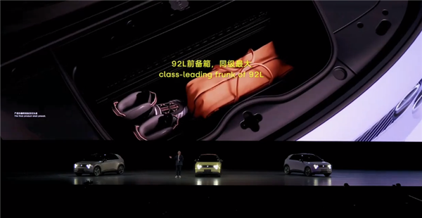 其基于纯电平台打造,拥有高达92升的前备箱,同级最大,并且还设计有排水孔,甚至可以用来养鱼,不止如此,后排座椅平放后可形成超大纯平空间,容积达到了1250升,让小车也有大空间。