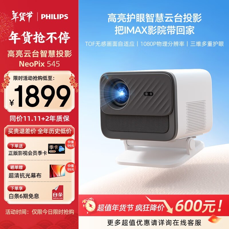 飞利浦NeoPix 545:全玻璃镜头、智能对焦的1899元高清投影仪,家庭影院与办公娱乐的理想伙伴