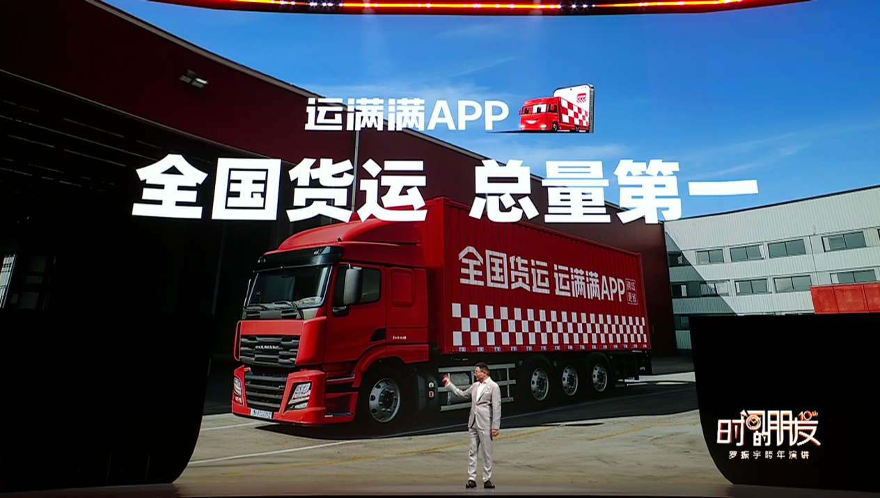 早在2017年,运满满就曾亮相罗振宇的跨年演讲。七年时间,运满满App已经成为了中国货运总量第一的品牌。罗振宇说“过去一年,有400万卡车司机在运满满上接单、拉货。因为平台长大了,就有更快的匹配速度、更合理的路线设计。他们(运满满)平均能帮货主省下10%-30%的货运成本,有的货主能省100万。而一个司机一年也能少花一到两万空驶费,也就是车辆空载回程的费用,还有油费、路桥费。”