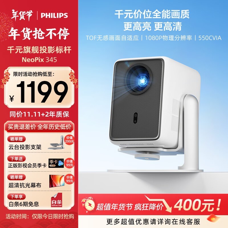 飞利浦NeoPix 345:1199元高性价比,全玻璃镜头+智能Android影院,打造家庭私人高清娱乐空间