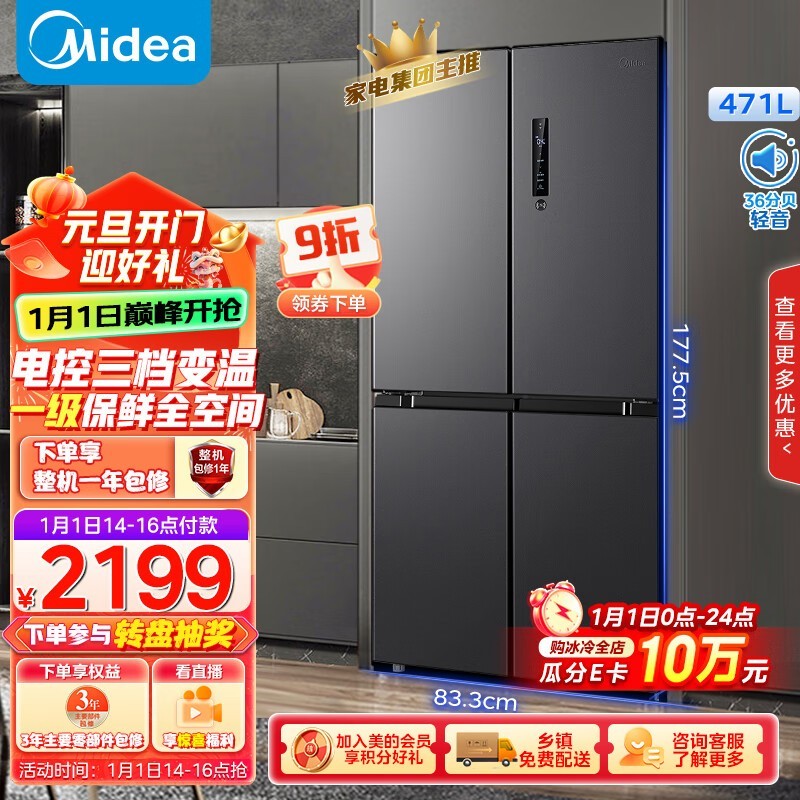 美的471升变频一级能效冰箱:2199元入手