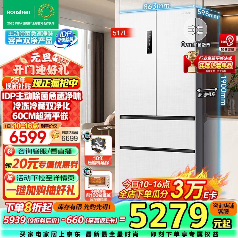 容声法式多门冰箱4618元 家电优惠来袭!