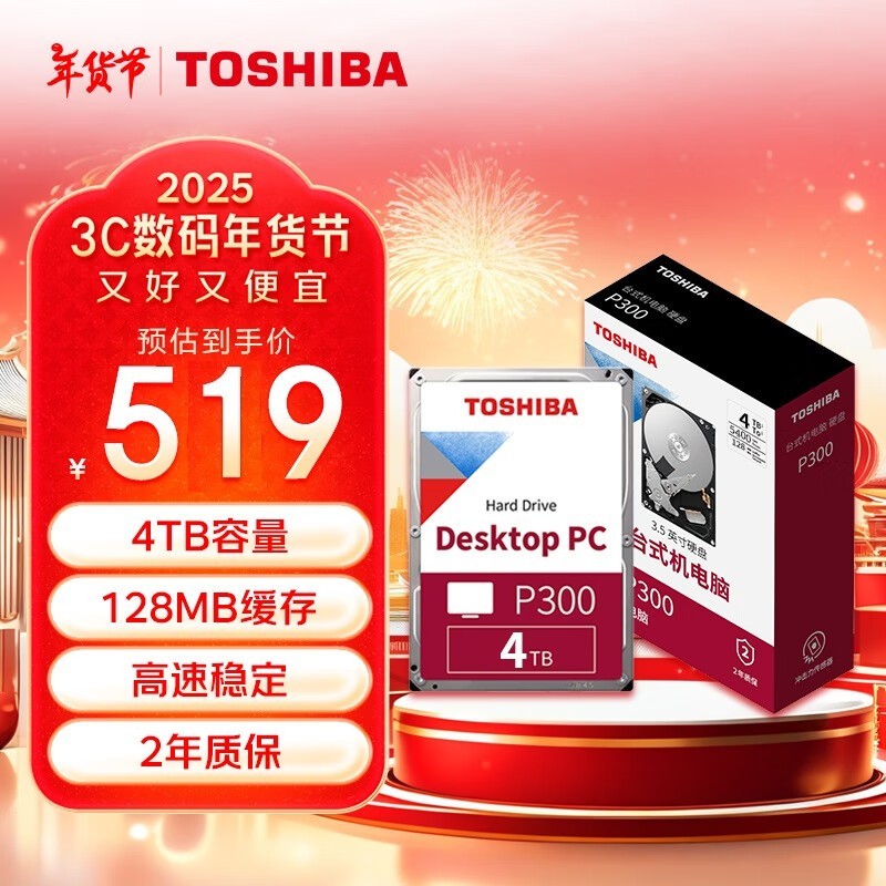 东芝4TB硬盘限时抢购价476元