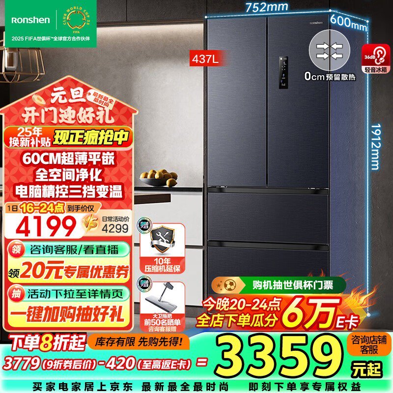 容声437升冰箱京东自营活动价格仅3212元