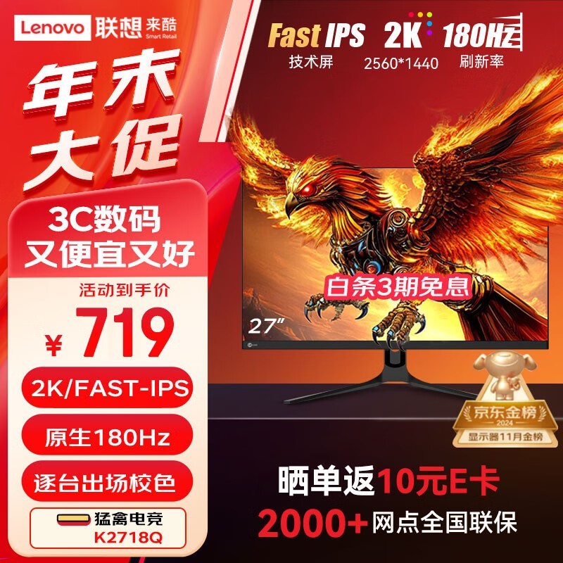来酷显示器秒杀价719元!27英寸QHD高清显示器仅售719元!