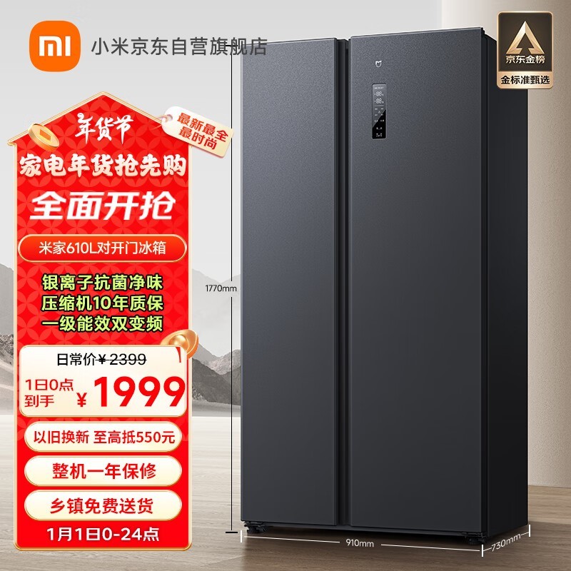 米家WMSA墨羽岩系列冰箱到手价1599元!