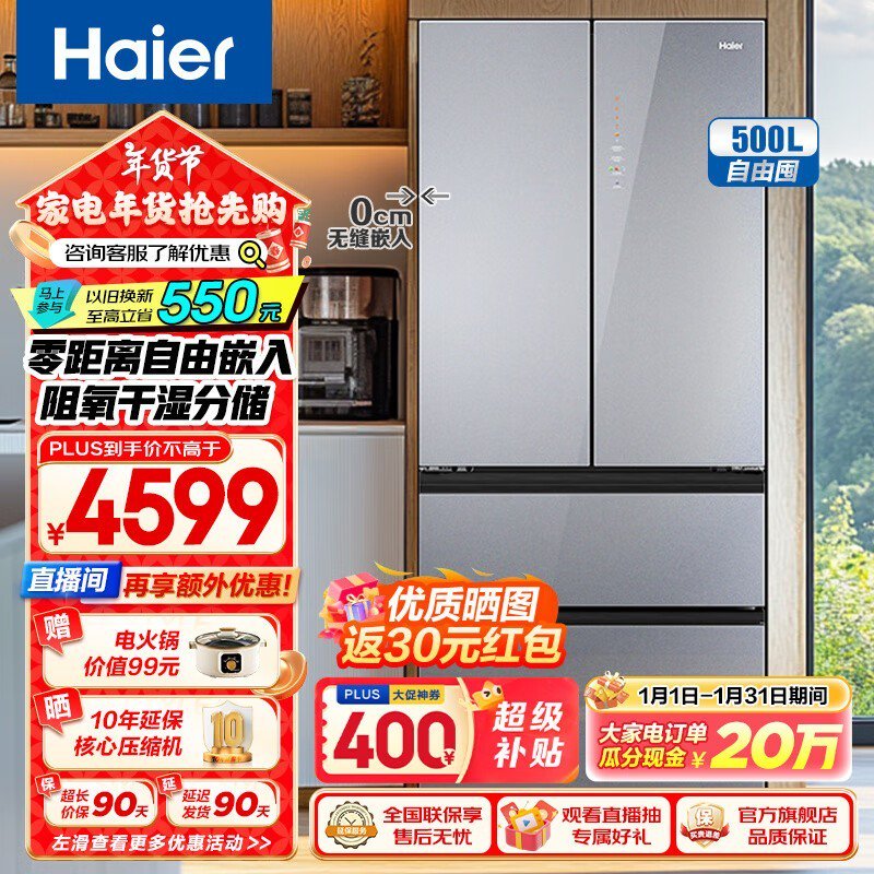 海尔零嵌冰箱:到手4399!