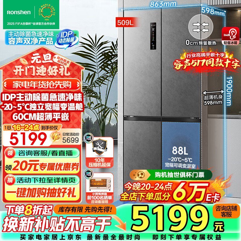 容声 BCD-509WD2FPQLA 一级能效冰箱3783元