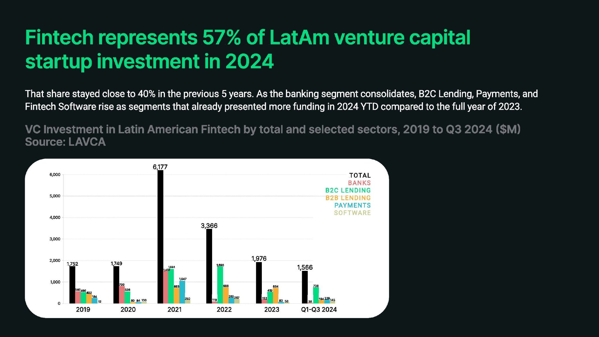 2024年,金融科技占拉丁美洲风险资本创业投资的57%。