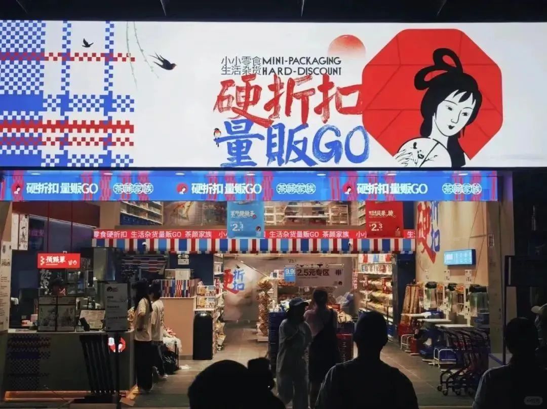 甚至就连做茶饮的茶颜悦色也在今年8月开出了一家硬折扣超市。该店位于长沙市黄兴路步行商业街中心广场东南角,其“硬折扣,量贩go”的超大招牌,醒目吸睛,店内还设置2.5元、9.9元专区,主打150+款零售产品一站购齐。