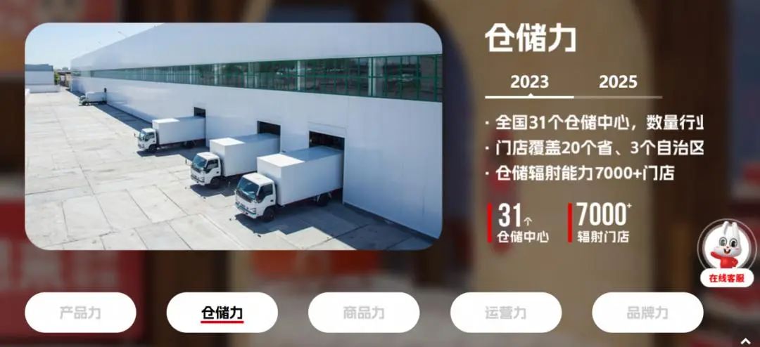 打开万辰集团好想来官网可以看到,2023年好想来已经搭建了31个仓储中心,仓储辐射可覆盖7000多家门店,预计2025年仓储中心数量将扩充到50个,覆盖门店数也将提升到12000多家门店。
