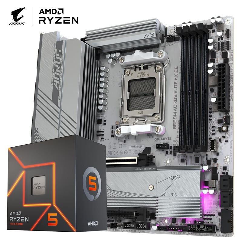技嘉主板CPU板U套装冰雕B650M AORUS ELITE AX ICE+7500F处理器1599元