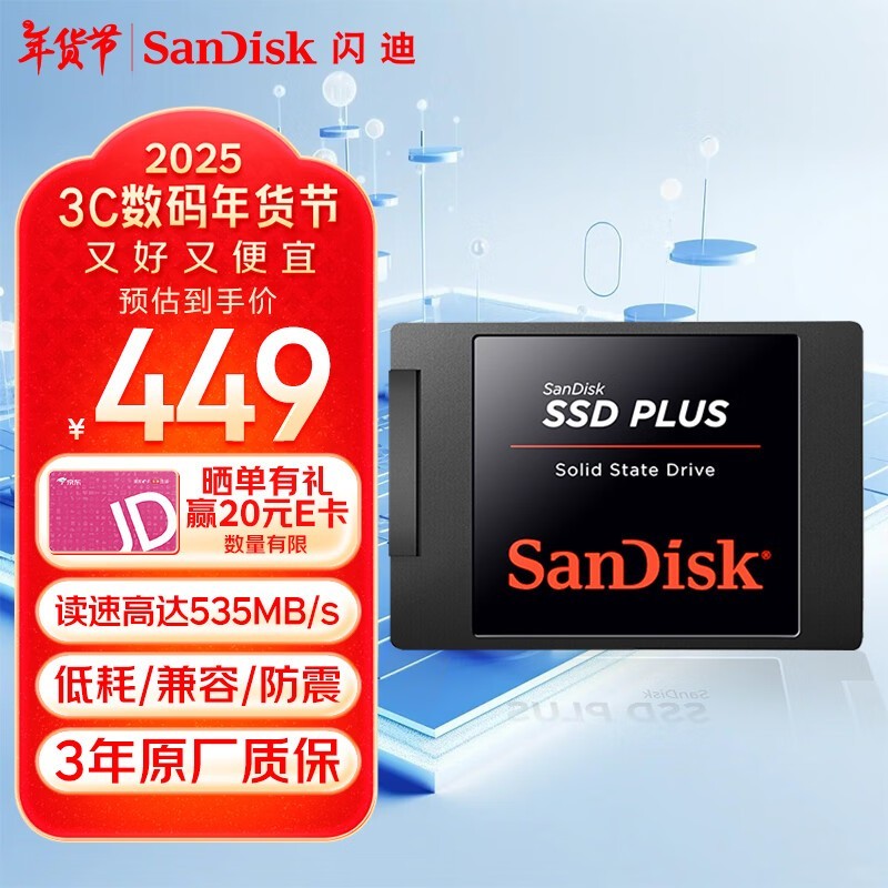 闪迪1TB固态硬盘449元入手 480GB的容量足够用了
