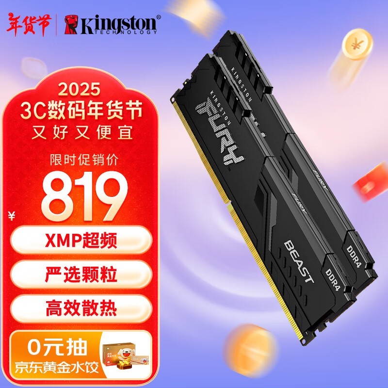 金士顿FURY Beast DDR4 3200台式机内存只要818元