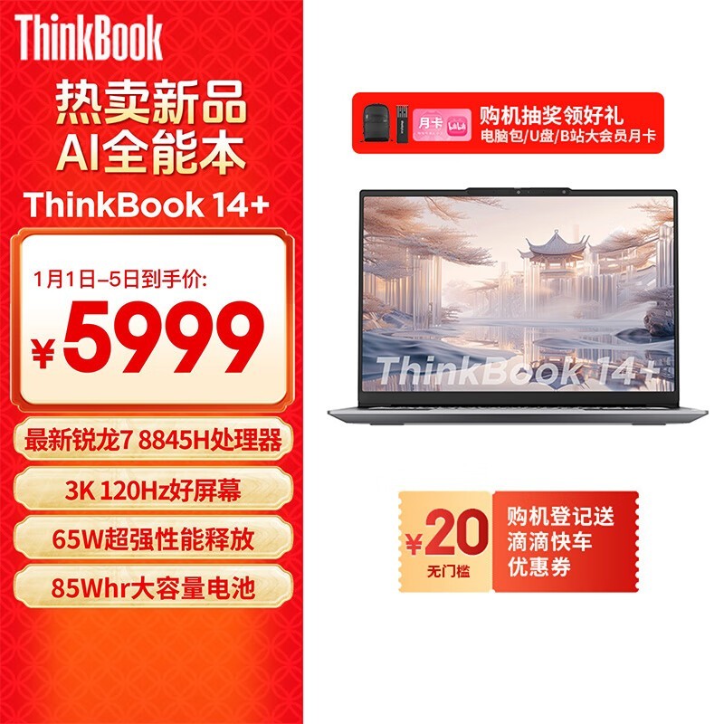 ThinkPad 思考本 14+ 八代锐龙版轻薄笔记本电脑 现价4949元