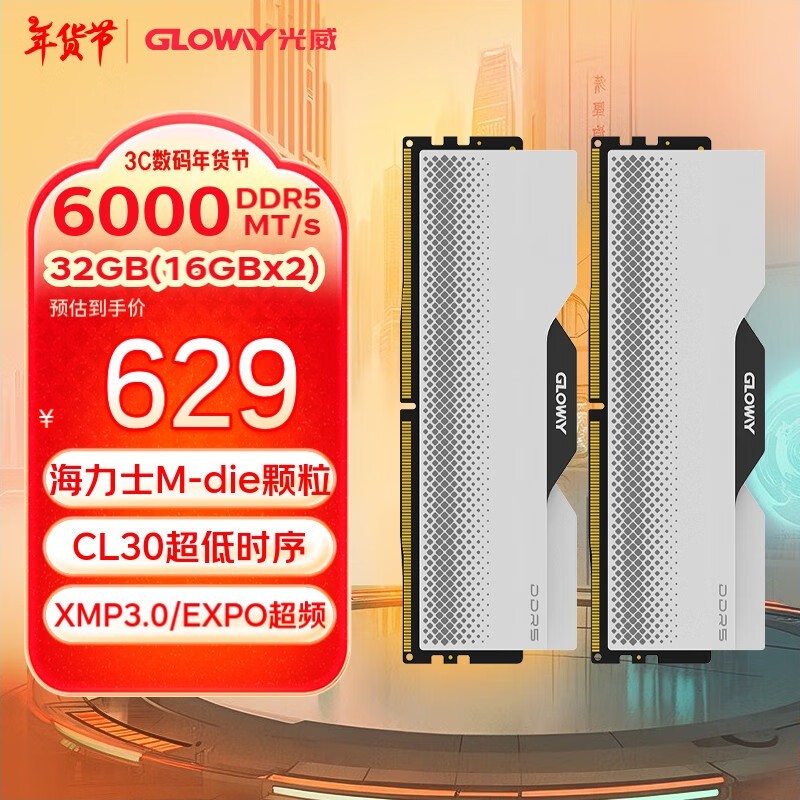 光威32GB DDR5 6000台式机内存条仅售610元
