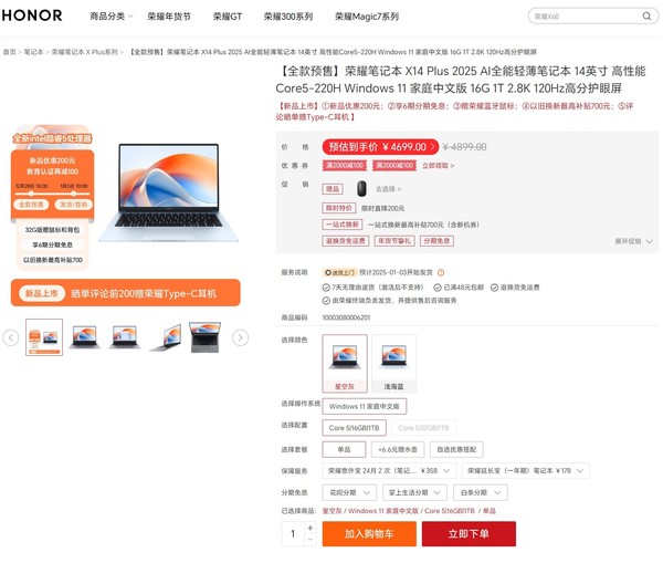 荣耀笔记本X Plus系列2025款明日正式开售 售4699元起