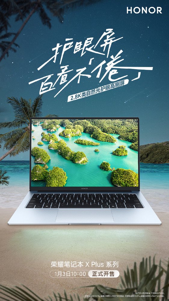 【CNMO科技消息】1月2日,荣耀智慧生活官方宣布,荣耀笔记本X Plus系列2025款1月3日10点正式开售,尊享价4699元起,欢迎选购体验。本次新品共包括14英寸和16英寸两款,主打2.8K类自然光护眼高刷屏和四重护眼技术,有需求的小伙伴可以关注。