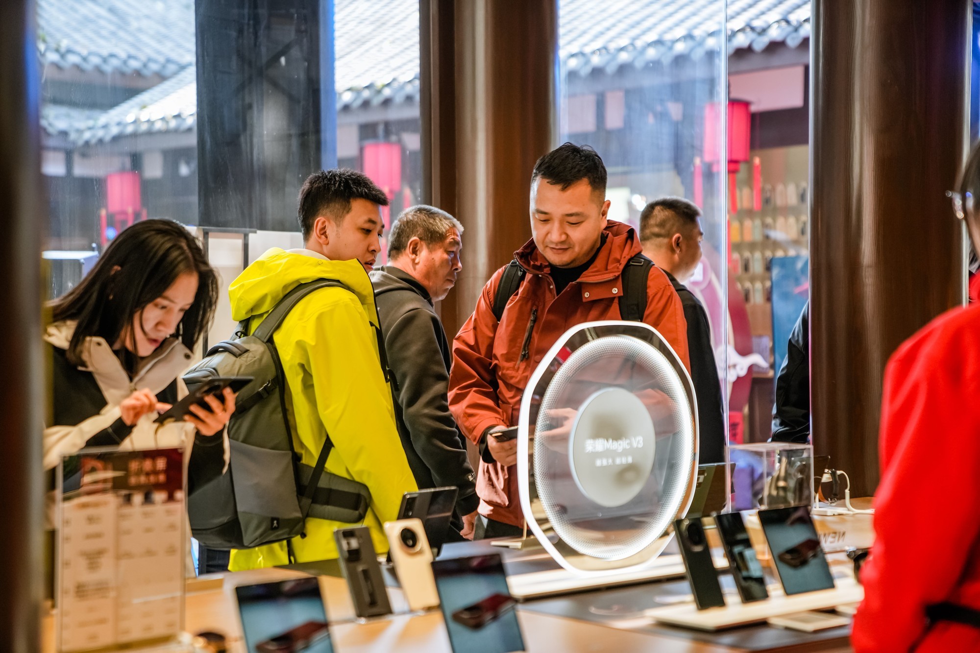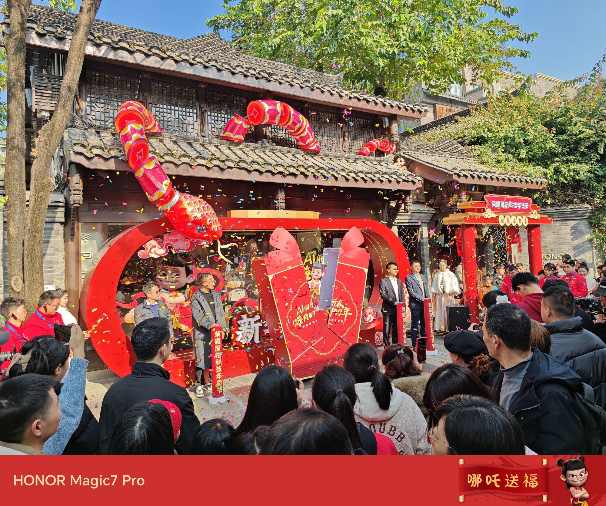 自本月23日荣耀官宣成为《哪吒之魔童闹海》官方合作伙伴,携手哪吒开启2025荣耀魔法科技年货节之后,全国超2000家荣耀门店同步迎来哪吒主题焕新,部分门店更有本次宽窄巷子同款“荣耀AI魔法市集”同步开市,消费者前往打卡有机会获得哪吒周边,并有3500元全场至高优惠、还有机会领取200万份购机超值好礼,先到先得。
