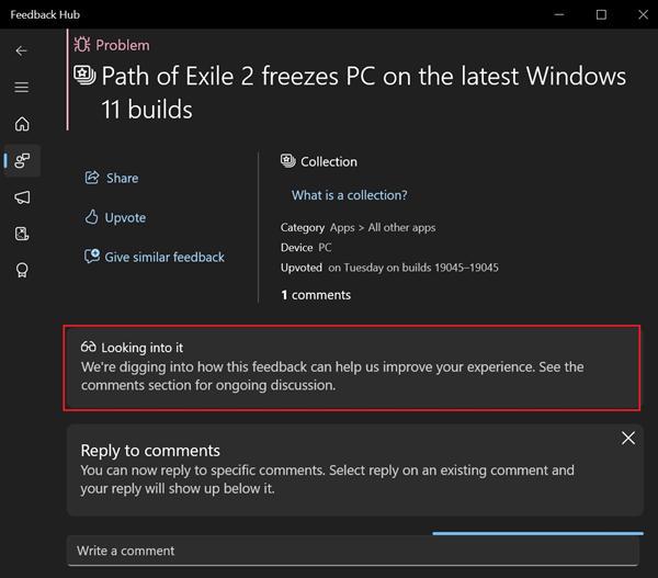 微软在一则反馈中添加了"正在调查"的标签,表明公司已经意识到该问题并展开调查,目前临时解决方案是将Windows系统回退到Windows 11 23H2或Windows 10,或者尝试限制CPU核心数量。