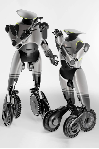 广汽集团此次发布的GoMate是一款全尺寸的轮足人形机器人,全身拥有38个自由度。机器人创新性地采用了行业首创的可变轮足移动结构,巧妙地融合了四轮足、两轮足两种模式,开辟了人形机器人另一条技术路线。四轮足稳定状态下高度约1.4米,两轮足站姿高度可达1.75米。四轮足模式下,机器人可稳健上下楼梯、爬坡、单边越障;两轮足模式下,机器人动作灵活高效,空间占用更小。