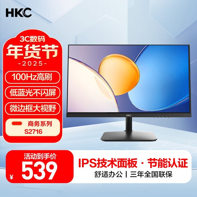 IPS显示器秒杀价458元!HKC惠科S2716 27英寸显示器促销仅458元