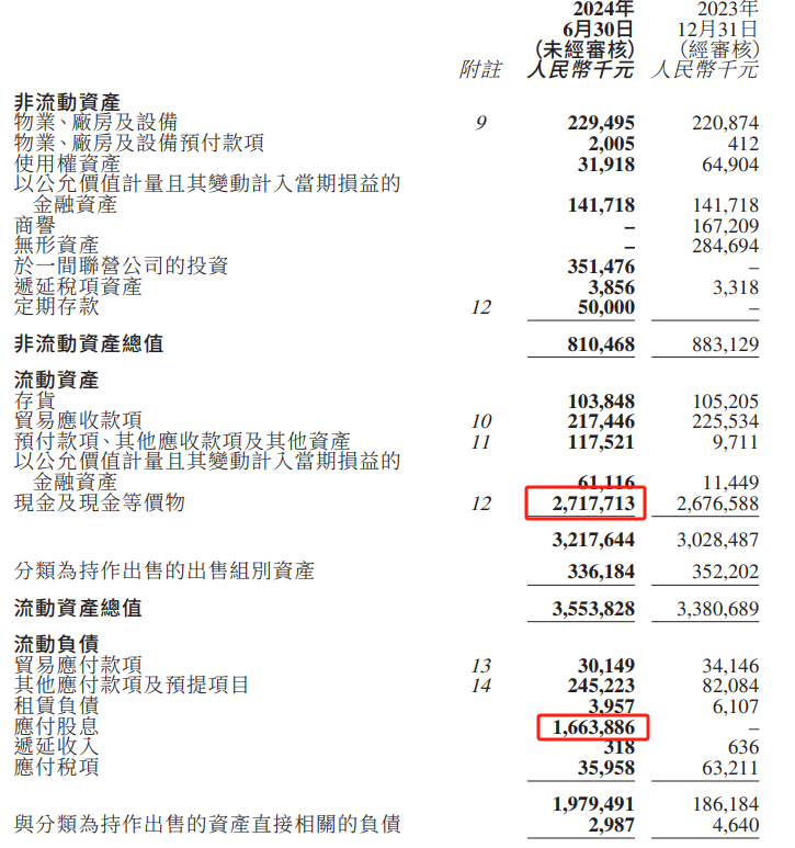 截至2024年上半年末,康基医疗现金及现金等价物金额约为27.18亿元,扣除流动负债项下的应付股息金额16.64亿元,账面仍有较多净现金。