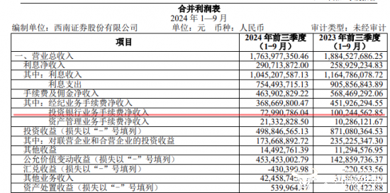 值得一提的是,据西南证券公布的2024年第三季度报告显示,在2024年前三季度,其投资银行业务手续费净收入约为0.73亿元,同比上年同期的1.00亿元有所下降。此外,其资产管理业务手续费净收入由上年同期的0.10亿元增长至0.21亿元。
