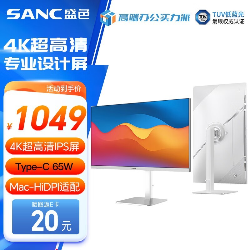SANC 27英寸4K显示器跌至798元!超高清画质+ Type-C接口