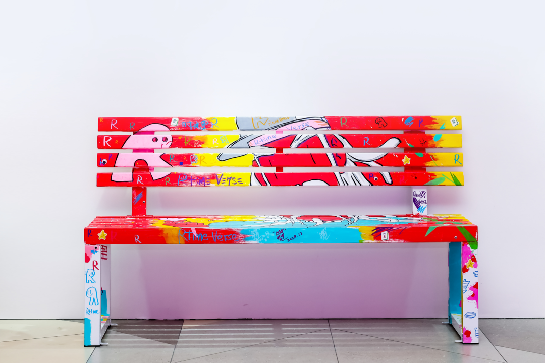 比如,在时光里艺术家共创展中,不仅能欣赏到艺术作品外,供等待电影开场的参观者休息的椅子也击穿了“次元壁”,成为一种艺术作品。记者看到,现场,原本素白椅子上被艺术家进行了涂鸦,甚至允许访客在此基础上继续创作,使其最终成为“银幕无边界”的实体象征。