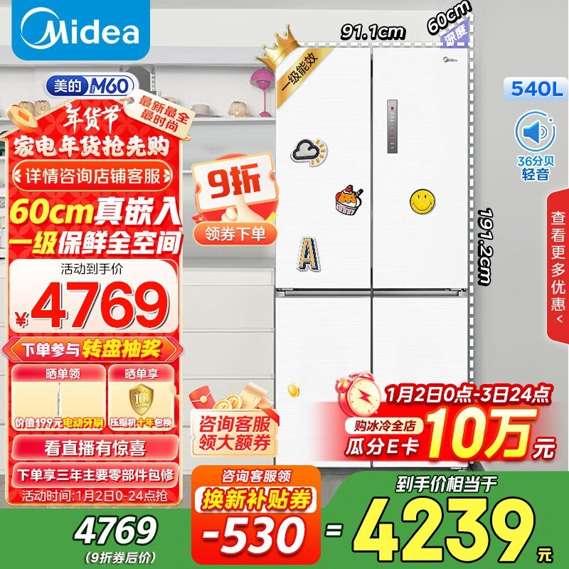 美的Midea MR-567WUSPZE冰箱4239入手赠199元电动牙刷