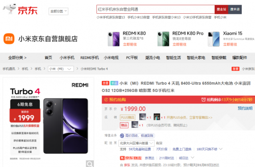 1月2日,REDMI Turbo 4正式发布,售价1999元起,现已开售。为满足消费者第一时间到手新机的需求,京东携手小米打造“先人一步”计划,发布会当天0点开启盲售,提供限量1000台REDMI Turbo 4 12GB+256GB暗影黑及祥云白盲售版新品享优先发货,限量赠米家智能体脂秤S400,最快发布会当晚就能到手新机。目前,京东已同步开售REDMI Turbo 4,下单可享6期免息、赠价值675元五大品质保障权益(含碎屏保一年、电池盖保一年、进水保一年、电池保五年、365天只换不修)、以旧换新至高补贴800元、PLUS会员或认证学生赠1年延长保、评论晒单返30元京豆。此外,京东年货节已火热开启,全场直降,每天可领60元额外补贴,6期分期免息更划算,又好又便宜。过了腊八就是年!1月6日腊八前夜晚8点,京东年货大放价,现货巨优惠!