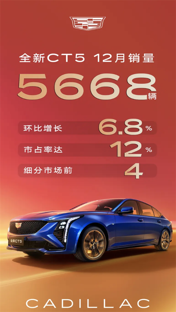 CT5车型12月销量为5668辆,市场占有率达到12%,环比增长6.8%。