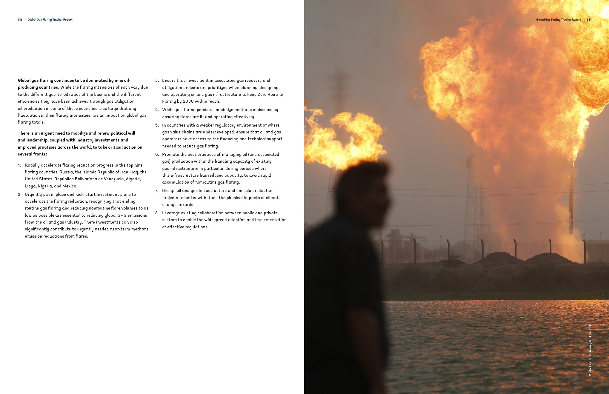 俄罗斯、伊朗、伊拉克、美国、委内瑞拉、阿尔及利亚、利比亚、尼日利亚和墨西哥仍然是2023年排在前九位的放空国家。这9个国家加起来占全球天然气燃除量的75%,但石油产量仅占全球的46%。